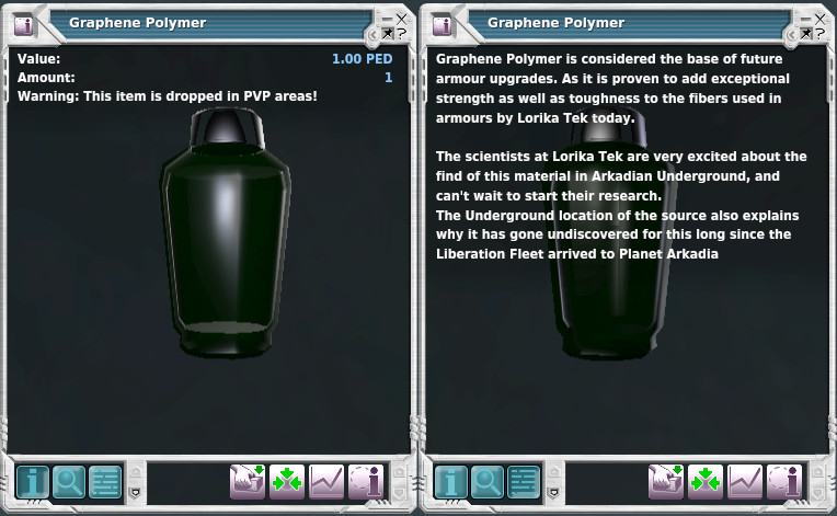 After carefully reading your requirements for screenshots, I began to wonder if some of the previously submitted screenshots are in fact ineligible to win their payout or not (due either to missing tooltip in loot window or unclear info pane). I was also unclear for the mining as to whether you wanted the info window for the Item mined or the Resource Claim deed. In most cases I have assumed the "Resource Claim Deed" to be the valuable piece of information. So, given that some of the previous images may (or may not) qualify for a payment I have uploaded new copies of some images with (I believe) the full info required. Please also note that in most cases I did not mine the resource fully out before screen-shotting. I claimed only the first "pull" from the harvester to get the item in the loot window to qualify as per your requirement. I hope that was okay to do? Lastly - please note that I will be moving country during the "two weeks" it will take to award the first round of loots. If you pay directly to my PED card that's fine but otherwise please hold the PED for me until I can get back ingame from my new home THIS Post then, is also my claim for Kaz Stones. View attachment 1776